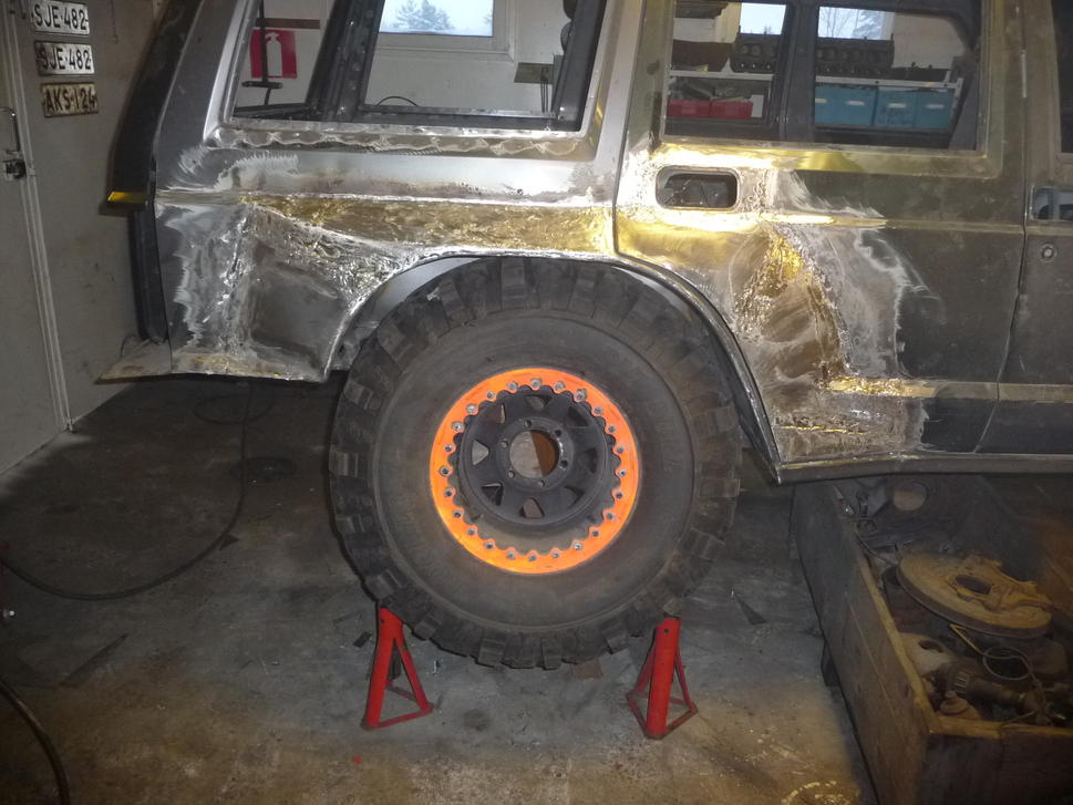 Sovittelin tänään 35X14,5-15 rengasta alle, ja näyttää siltä että voi unohtaa 37" Boggereiden ahtamisen noihin pyöränkoteloihin Kiitos RikuH renkaan lainaamisesta.