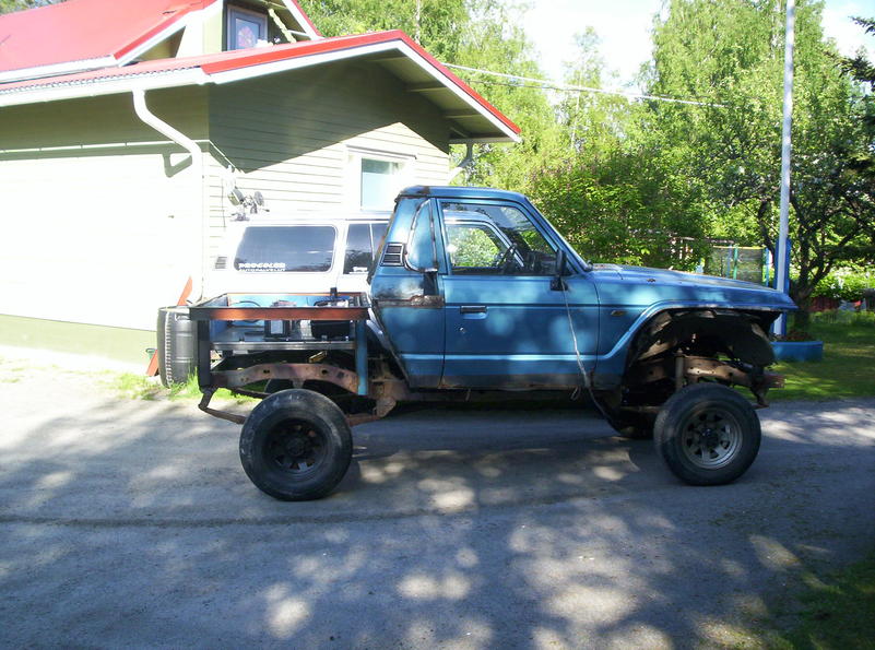 Ton korkeemmal ei kiivenny kallioo pelkäl takavedol, pikkasen köykänen takapää   . Harmaas hojos 50mm korinkorotus, pitemmät riiput ja 33", sinises 50mm korinkorotus, soa ja pikkupyörät.