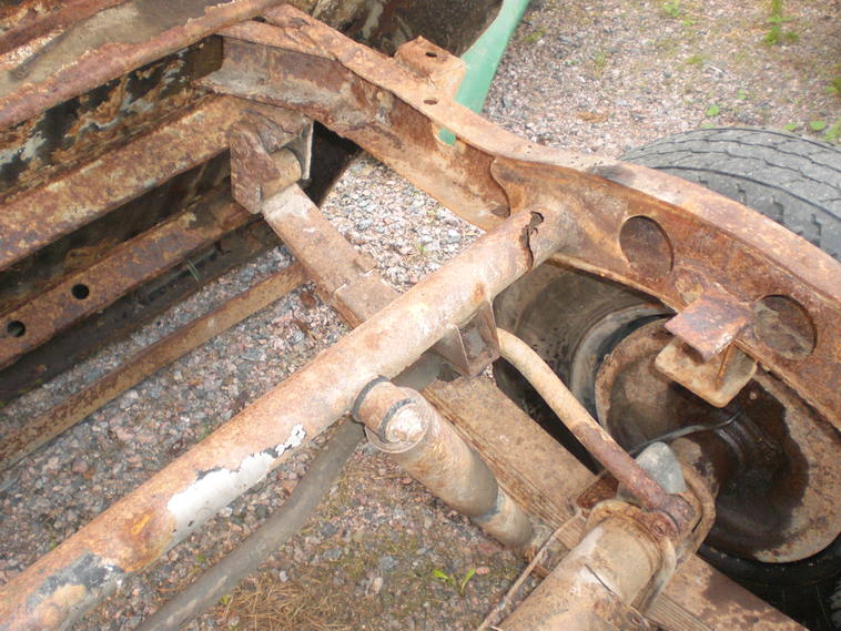 Takarunkoa puuhattava hieman, jousien korvat just lähössä irti ja iskariputki poikki, pakoputki löyty pihalta haitarin kanssa, jostain nissanista.