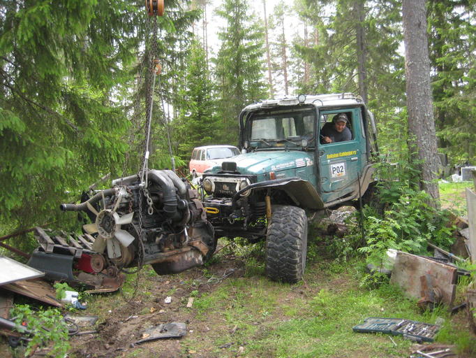 minua jyväskylä kutsuu taas viikoksi niin marko jäi omanonnensa nojaan lintutornin kanssa 100kg lisää tuntuu pieneltä uhraukselta lisäntyneeseen hevosvoimamäärään nähen ja yleensä palkinnoilla olleet autot painaa vissiin jotain 3000kg (pylkön volvo) bj paino hydraulivermein täydessä kisa iskusa paratiisisä 2220kg. että kyllä sinne vielä painoa mahtuu. oli muuten monta toitsia samalla työmaalla... ja kaikilla naruvälisä
