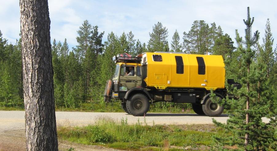 Tällanen vähän pirteemmästi väritelty asuntoautojen äiti tuli kesällä Ruottissa vastaan