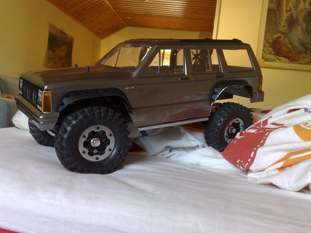 kun ei autojen laitto nappaa niin päätinpä ruveta synnytyshommiin... kaki tahtoo pikkuveljen.tehdään siis semmoinen.tuli taanoin hommattua tommoinen axialin scx10 scalecrawleri ja netin syövereistäsitten löysin että proline valmistaa cherokeen koria 1:10 mittakaavassa.eipäs jäänyt vaihtoehtoja.autoa rakennellaan kokoajan lisää,sen mitä töiltään ja mukuloilta kerkiää.ohessa muutama välivaiheen kuvatus ja listaan vähän speksejä jos nyt jotain kiinnostaa: axial scx10 kit runko novak 55t moottori,cc sidewinder nopari 4s lipot pulso ubec etronix 2.4ghz 3pm radiot tulossa:vinssi,valot ja kaikkee pientä viimeisessä kuvassa toinen terapialelu,team academy SBV2 pro carbon jota huristellaan samoilla radioilla kuin skaalaa.