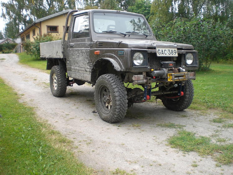 Susuki mallia lava :)Elikäs pistetään tännekin jotain juttua vähäsen tuosta uusimmasta hankinnasta eli LAALAA:lta kotoisin oleva kampe. Kyseessä -86 vuoden sj410k jossa -90 samurain tekniikka.Tarkoitus on vähän tehä tästä maastokykyisempää kulkinetta. Jotain on tälle jo tullu tehtyäkin ja tullaan viel tekeenkin paljon mutta siitä ens numeros