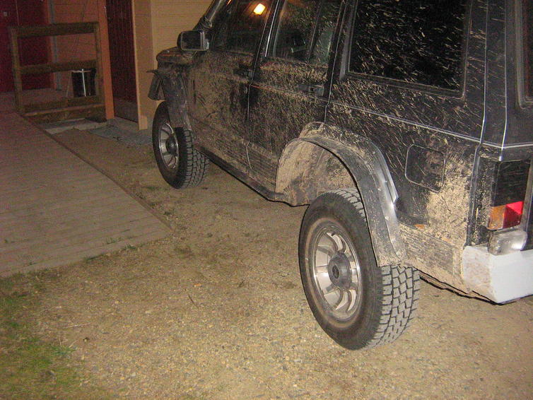 En toisaalta ihmettele jos on 33 x 12.50 renkaat 10" -44ET vanteilla niin tulee sanomista, mutta jos oli alla esim. 31 x 10.50 niin eipä ole virkavallalla mitään mutinaa siihen. Se on täysin leimakelpoinen rengas XJ:hin.. itte asiassa taitaisi onnistua teoriassa vielä 31 x 12.50 jos vain ei tarttisi olla niin paljon levittävillä vanteilla että mahtuu pyörimään - ja harvassa on tuon kokoiset renkaat.