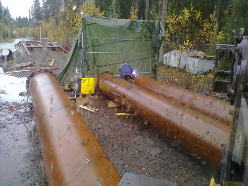 Sauhupiippua oltiin hitsuuttamassa, halkaisija 800mm pituus 24000mm.