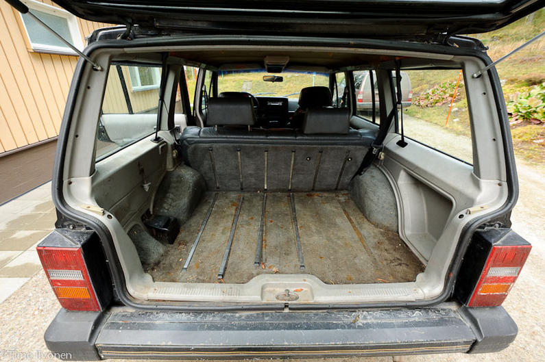 Jeeppi cherokee -90 "Saved by Volvo"Tjahas... Alotellaas tätä iisakin kirkkoa pikkuhiljaa. Lähtötilanne on 1990 vuoden Cherokee 4litrasella kutosella. Alusta on väsähtänyt ja takakontti on märkä. Kone sentään kuulostaa ehjältä eikä laatikkokaan hirveää ääntä pidä. Mittarin mukaan sillä on huristeltu vajaat 270tkm. Ulkoapäin melko ehjät pellit. Helmat ok. ![]() Tarkoitus olisi saada tästä semmoinen maasturi tehtyä. Jonkunlaiset nappulat. Pari tuumaa ylös, lukkoa sinnetänne ja vinssi keulaan. Katotaan kuin käy.