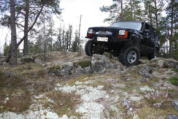 Eli elokuussa pihaan ilmaantui tuollainen pieni sievä ja täysin orggis Wrangler TJ 2005 joka on tullut maahan muuttoautona Qatarista:![]() Tekniikkana on 4.0, 6-vaihteinen manuaali ja sokerina pohjalla takana on Dana 44 lukkoperällä. Levyjarrut löytyy myös takaa mutta ABSeja ei ole. Aika täydellinen aihio käyttö/safariautoksi siis. Sen verran säälittävältähän tuo näyttää tehtaan kuosissa, että kaikille lienee selvää että tuo on oikeasti amerikkalainen puolivalmiste joka on tarkoitus viimeisteillä omistajan oman maun mukaan käyttäen yöt amerikkalaisia tarvikekauppojen kataloogeja selaillen ja viikonloput osia paikalleen ruuvaten. Syksy siis meni auton rakennussuunnitelmia pyöritellessä ja nyt on päästy ruuvailussakin alkuun eli alla on Ranchon +3" alustasarja säädettävillä iskareilla. Kuva on ekalta testiajolta 31" renkailla keskellä yötä lumihangessa uudenvuodenpäivänä: ![]() Tästä on hyvä jatkaa Jeep-harrastusta. Seuraavaksi isompaa levikettä ja kumia alle, ehkä vähän panssaria ja puskinta, vinssiä, jne. pientä normaalivarustusta. Ei taida tekeminen loppua vähäksi aikaa tuon kanssa.
