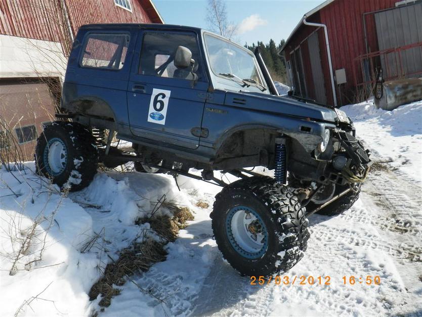 KURA RT:n Suzuki samuraitarkoituksena valmistaa suunnistus kilpuri tuosta suikasta. projekti ei hivele silmiä,mutta siinä on toimivia ratkaisuja. autossa on: lj akselit 4.88 arb TG:n jakis välitys. corollan 4k moottori+5v aski cas coiloverit edes lj ohjaus hilppeet. akseli väli 2370mm