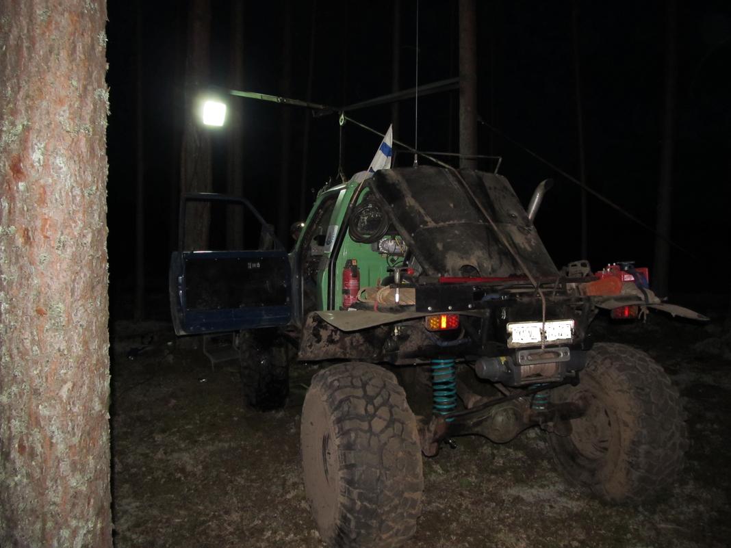 Kiitos kaikille jotka teki reissun mahdolliseksi. Ilman Ossin jeesiä ei auto olisi tullut jotenkin valmiiksi. Kankulle kiitos myös monesta eri jeesistä. Petelle kiitokset La-asennuksista yms. Eezalle kiitos loistavista luukuista jotka kesti kuperkeikan taaksepäin suorin vartaloin ne on ihan kuin uudet. aivan loistavaa materiaalia. Venäjän puolella kiitos Timolle ja heidän huollolle ja Nikolle joka näytti että on sellainen ajomies että pois alta! Ja kiitos Arskalle dumpperista ilman sitä olisi kisa jäänyt ajamatta kokonaan ja tietty Lamppu samille joka sen toi lappeenrannasta meille. reissu oli enemmän huoltoa kuin ajoa,mutta silloin kuin auto toimi, niin eteni hyvin. tuli tehtyä liian isoja muutoksia jotka ei taaskaan valmistunut ajoissa. nyt ei tehdä isoja muutkoksia vaan korjataan nykyiset. kaato oli oma vika kun alkupätkä meni liian hyvin, niin ei tullut vinsssillä varmistettua nousua. onneksi oli kypärä päässä ja vyöt kiinni. Ajamalla päästiin kuitenkin pois metsästä ,kun Ossi kalsarit jalassa tuli ojien yli ja saatiin autokäyntiin. etupää vähän lommolla, ja akseli vino, iskarit säily ehjänä ,tuulilasi tuli sisään joka aiheutti vähän turvotusta vasempaan poskeen. Muuten kärsimys henkistä ! Sitten tulikin vietettyä reipasta leiri elämää ja taka-akseli tuli parsittua kasaan ,mutta ei ollut järkeä lähteä enää viimeiselle pätkälle riskeeraamaan. Venäjä on venäjä Ensivuonna uudestaan ! |
