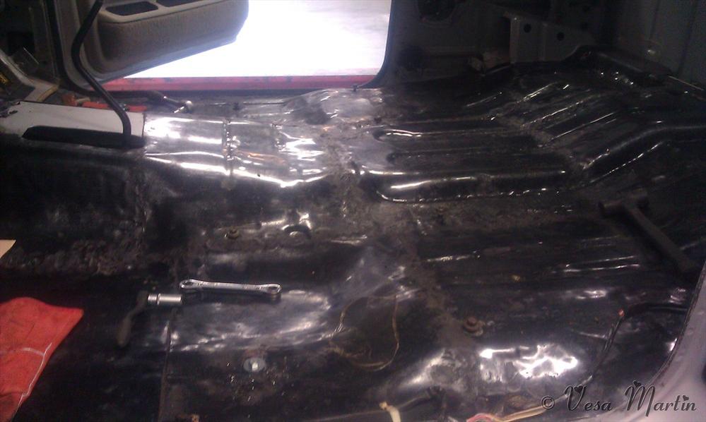 työvälineiksi iso rälläkkä,terävä ryssä avain ja leka, puu helmat oli ruuvattu helma peltiin kiinni ja sitte siihen päälle kuitua ja sitte se uretaani oli joka raossa ja päälle 2cm kittiä tuossa muutama kuva...