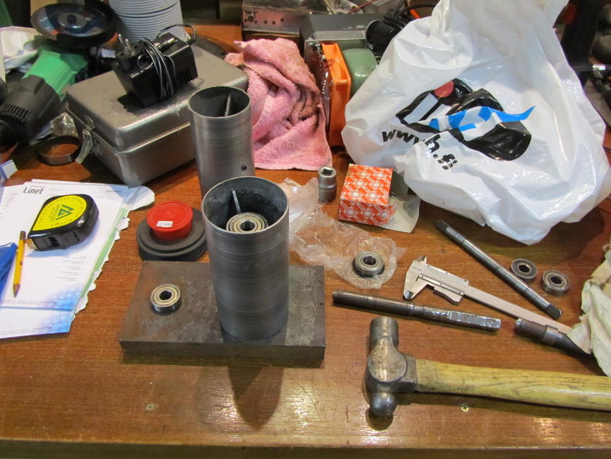 Akselia kävin varovasti kysymässä duunipaikan vieressä olevasta konepajasta ja sieltä kaveri sahasi 30cm pätkän akselia ja kaikki tarvittava olikin kasassa.