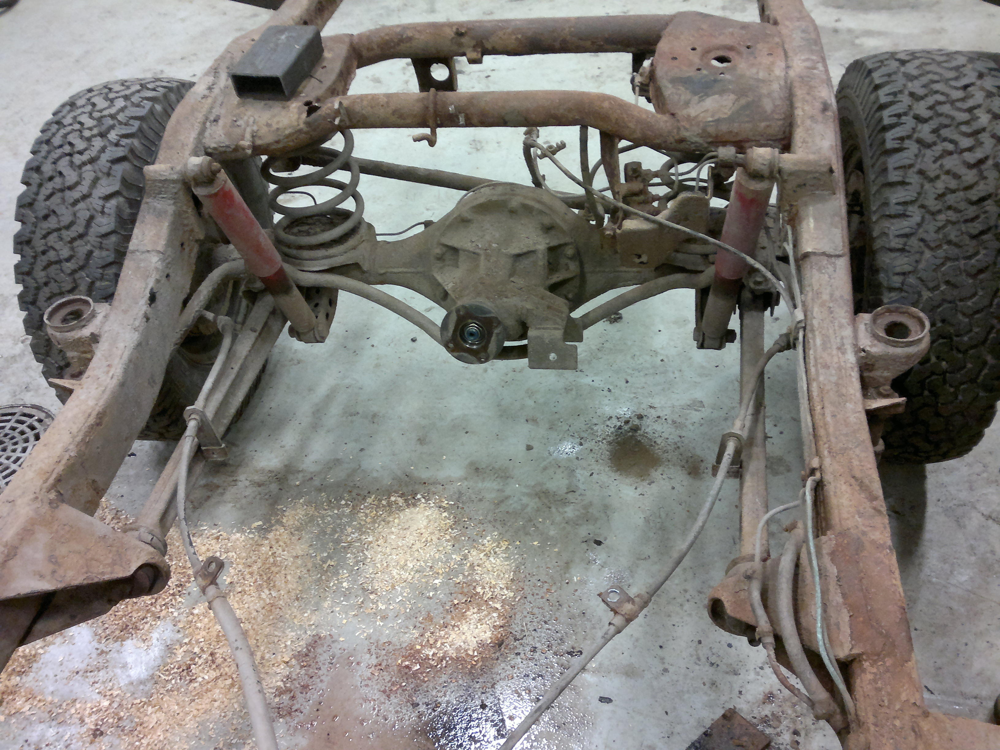Taas on palleroa hiukan saatu parsittua ja runko alkaa olla hiekkapuhalluskunnossa, samoin taka-akseli. Etuakselia en taida viitiä sen enempää purkaa, kun siinä nyt ihan hyvä maali ja öljykerros päällä