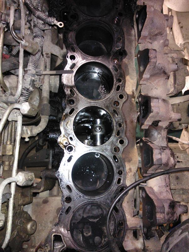 sitten alettiin aukoo konetta ja sieltähän löyty ainoastaan 5 mäntää... yks olikin pieninä palasina öljypohjassa.