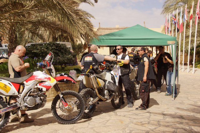 Tuareg Rallyn organisaatiolla on ollut kiireinen päivä saada kaikki kilpailijat ja kalusto katsastettua. Ainakin suomalaisten kohdalla on katsastus sujunut ongelmitta ja edennyt joutuisasti. Kisakuume täällä Hotel Saharassa nousee iltaa kohti mentäessä ja huomisen startin lähestyessä. Kaikilla kilpailijoilla alkaa olla jo kaikki valmiina huomiseen Tuareg Rally 2013 ensimmäiseen kisapäivään.