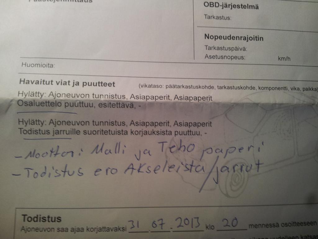 Käytinmpä leimalla pilkun nussimisekshan se meni.. ei muka kelpaa heille toyodiy:stä otettu osa luettelo. sit vielä pitäs olla mikä ero akseleilla Lj->auto mistä kone otettu. sit jotain puhu vielä että pitäs selvittää mikä on jarrujen teho verrattuna alkuperäseen että riittää.. mistä nyt paperia heille