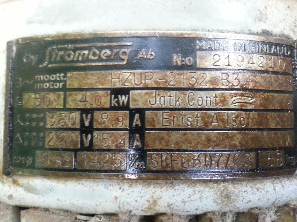 4kw sähkömoottoriHuuto tallintyhjennyksen johdosta myyntiin.vanha sähkömoottori. seissyt nyt jonkun aikaa käyttämättömänä mutta viimeksi ainakin toimisi. uuden sähköjöhdon kapistus vaatii. laitetaan lähtöhinnaksi vaikka 40e jos hinta ei tule miellyttämään niin pidän oikeuden olla myymättä. tämä sijaitsee nousiaisissa. ja nouto paikanpäältä mieluiten Huuto Viimeksi muokannut lampola : 27.06.2013 21:43 |