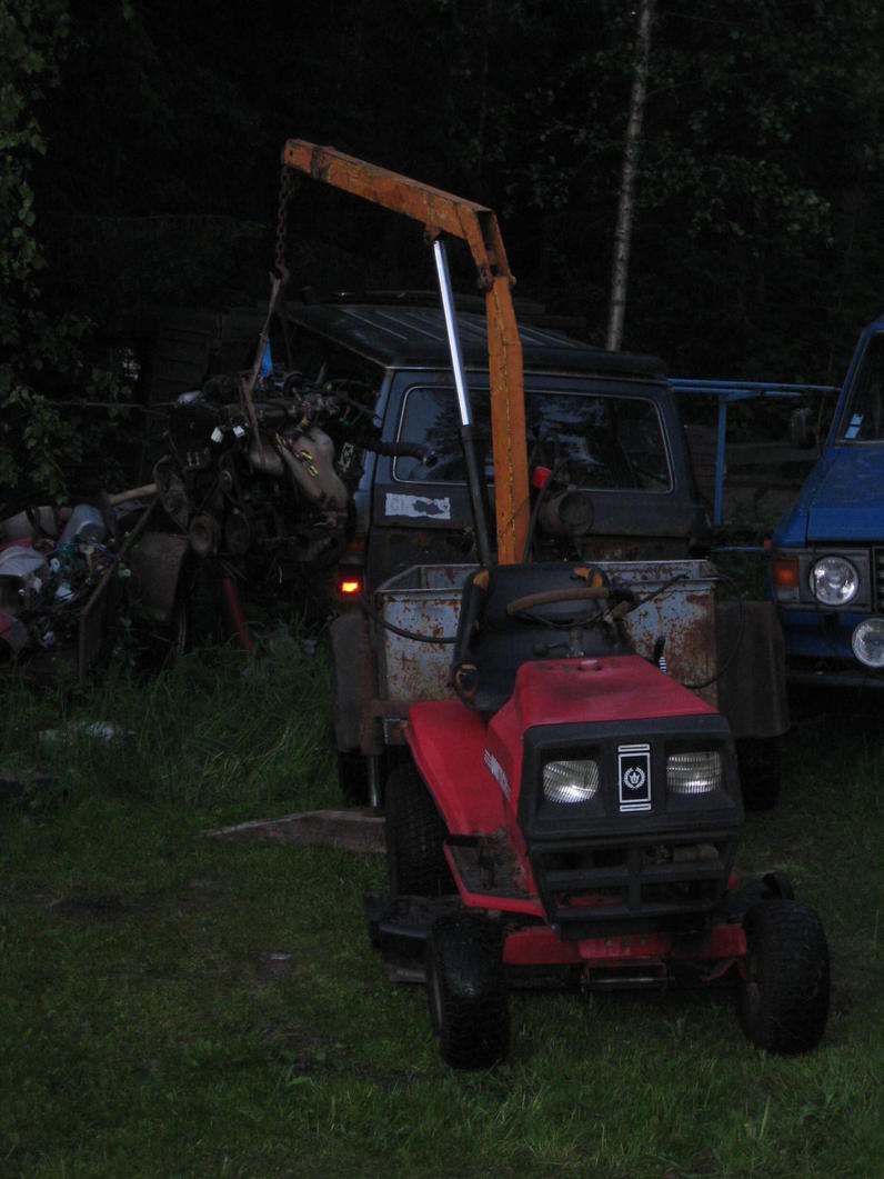 Rupesi tuossa tontin laidalla yks moottori häiritteen niin piti ruveta nosturin asennus hommiin