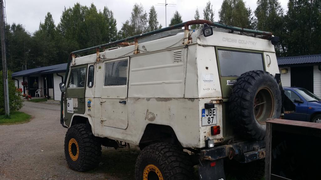 Volvo C303 5000€Myyty Pistetään kiertoon volvo. Täähän on suurinpiirtein vakio jos ei ota huomioon käretöntä sytytystä ja tehostettuu ohjausta.Jotain puuhasteltu: -nojakaaret ja pääkaaret sisällä -vinssi comeup (?) isolla kelalla ja narulla -nelivedon ohjaus muutettu katkaisijalle -muutema työvalo -moottoriin askeihin periin ja portaalibokseihin öljyt vaihettu -uus puola Mukaan mahollista saada varaosii esim ovia, polkimet, tankki, kardaanit, vaihdevivuston osia, raidetanko, jousia, jotain sähkö- ja jarrunippeleitä. Rekisteröity 7 henkilölle vaan on katsastamatta. Helmikuussa oli leima mutta jäi leimaamatta vähäisen käytön takia. Kaasarit säädätetty. Auton alle saa trelleborgit jotka ihan ok kunnossa. Lisähintaan lukkovanteet ja ehkä 37" creepyt. Nämä voisin jättää itselle, on uudenveroiset, enkä myy erikseen kumeja, ennen autoa. HP 5000€ taikka järkevä tarjous. Vaihdossa kävis Hilux, LJ, BJ, HDJ tai jopa joku jenkkinelikko. Kuvia lisää spostiin tai puhelimeen. Puh o4o-7637945 Myyty