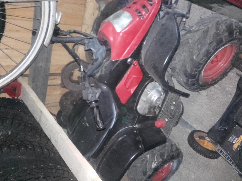 Mönkijä 70cc + kippikärryMyyty Tuommonen mönkijä jäänyt seisomaan pitkäksi aikaa ja joutaa pois. Jarru uusittu vuosia sitten mutta ei ole paljoa ajettu. 2016 keväällä meinasin laittaa ajokuntoon ja ostin akunkin, mutta jäi sitten kiireitten takia laittamatta ja työnsin takaisin liiteriin. Yhdistelmään kuuluu kippikärry.Hintaa paketilla 200e. Kuopiossa ja nouto. 0400 742676 Myyty