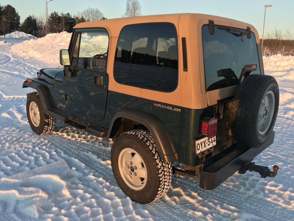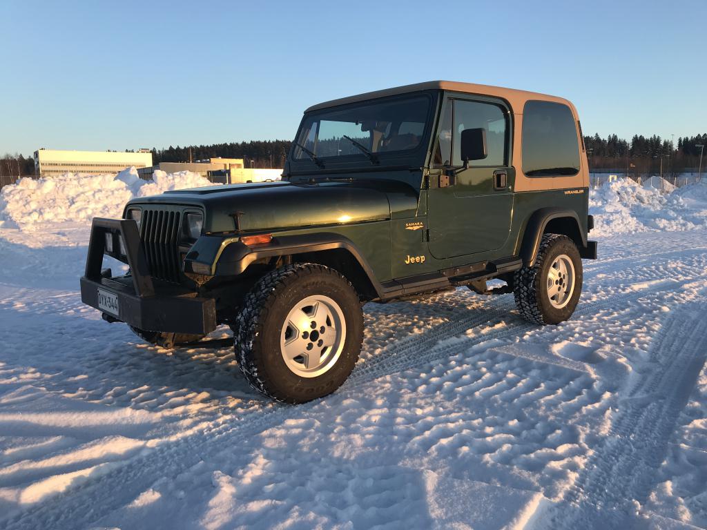 Jeep Wrangler YJ Sahara 1995Myydään / Vaihdetaan Myydään tai vaihdetaan siistikuntoinen YJ 2.5 moottorilla ja manuaalilaatikolla.Alkuperäisenä pidetty muuten paitsi puskurit jossain kohtaa vaihdettu jämerämpiin. Hiljattain tehtyä: Runkopalkit hitsattu juuri laajalti Sytkäosat uusittu (tulpat, johdot, virranjakaja, pyörijä.) Apulaitehihna uusittu Moottoriöljyt/suodattimet, laatikkoöljyt, peräöljyt. Uusittu takajarrurummut, kengät ja sylinterit. Uusittu lämpöanturi ja kaasupolkimen asentotunnistin. Uusi exiden akku. Vikojankin toki laatikon synkrot ääntää, bensamittari ei toimi. Ruvetaan pikkuhiljaa laittelemaan jeeppiä ja tarkastellaan hintaa sen mukaan mitä kerkeää tekemään. Vaihdossa kelpaa ensisijaisesti Jenkit mutta kaikkea voi ehdottaa. Hintaa ruvetaan polkemaan 6990€. Kysymällä lisätietoa... nolla-neljä-neljä-600-423 Myydään / Vaihdetaan