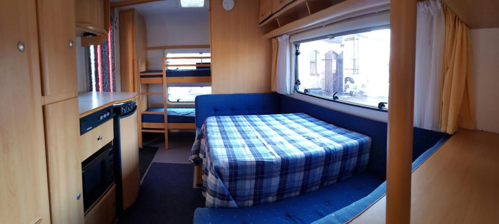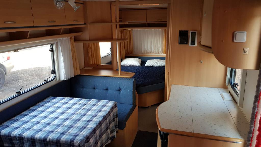 Dethleffs New Line 540 SK asuntovaunuMyyty https://www.nettikaravaani.com/dethleffs/540-sk/1495146Tästä vaunu suoraan käyttöön! Kaikki laitteet toimivat, puu- ja kangaspinnat lähes kuin uudet. Katsastettu 2017 huomautuksitta. Edessä parisänky, takana kerrossänky ja keskipöytä laskeutuu myös sängyksi (yht. 6hlö). 4 henkilöä yöpyy ilman, että pöytätilaa menetetään lainkaan. Ollut kevyessä käytössä, mutta ajossa, joten alusta ja tekniikka hyvässä kunnossa sekä aisajarru toimii. Hyvin varusteltu: - Alde keskuslämmitys ja lämmityspatterit, tasainen ja äänetön lämmitys. Toimii kaasulla tai 230v sähköllä. Ei varmasti tule kylmä - Sähköinen lattialämmitys, todella mukava kostealla tai pakkaskelillä - Jääkaappi + pakastelokero (kaasu/230v/12v), mikro, kaasuhella, suihku, 2xpesuallas, LED valot, radio, 6x9" kaiuttimet, kaasun ulkopistoke, TV-antenni, rullaverhot, 4 x kattoluukku, etumarkiisi, aisalukko, kallistusrampit, 20m jatkojohdot, peruutuskamera - Kaasupullo(t), pihakalusteet, ulkomatot, grilli, TV, kahvinkeitin ja astiat neuvoteltavissa. Helppo vetää, joten sopii myös ensimmäiseksi vaunuksi. Hintaan kuuluu opastus vaunun ja laitteiden käytöstä. Toimitetaan tarvittaessa lähialueelle ja ladataan kahvinkeitin valmiiksi. Katsastettu 4-2017 Vuosimalli 2000 Pituus: 7,5 m Leveys: 2,30 m Kokonaismassa: 1 400 kg Omamassa: 1 190 kg Vuodepaikkoja: 6 * * * * Hinta 8900 eur p. 040 839 0015 simo.rounela@gmail.com Myyty