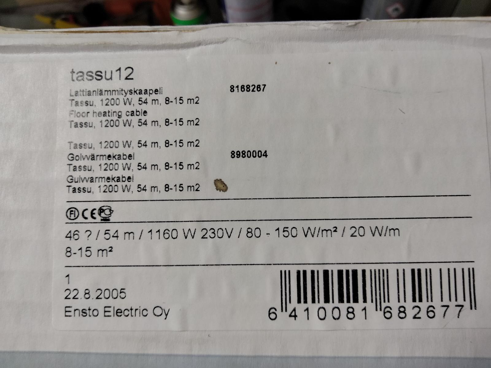 Lattia lämmitys kaapeleitaMyyty Ensto tassu 6 60w 29m 50€Ensto tassu 12 1160w 46m? 60€ Devi dtip-18 200w 10m 30€ Devi 550w 30m 50€ Ja joku irto pätkä missä ei päätteitä 20€ Kaikki kerrallaan 150€ Myyty Viimeksi muokannut tapsa4x4 : 21.10.2024 09:10 |