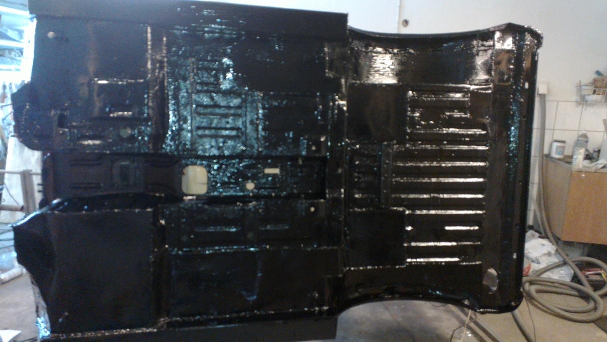 Enpä oo ny vähään aikaan laittanu kuvia Suikasta, joten korjataan tilannetta. Nyt on kori saanu kaikennäkösiä ruosteenestomaaleja suojakseen ja äsken heitin vielä massakerroksen pohjaan. Kohta pääseekin maalaileen auton julkisivua niinkin eksoottisella värillä kuin mattamusta
