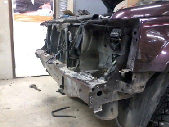 Aikani ihmeteltyäni päätinpä porata pistehitsit ja pari tulppahaitsausta auki ja kas "puskuri pala" (lähinnä eristepeltiä) olikin jo lattialla ![]() jotenka ei tarvetta ainakaan puskupellille.. eikun oikomaan koripalkin päitä,, ![]() saa poistaa/siirtää johonki....