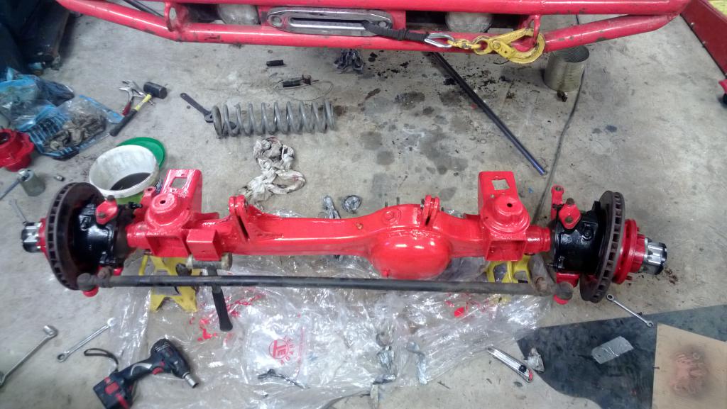 Pedit tulee nyt jousien suhteen akseliputken keskelle eikä etupuolelle kuten Jeepin akselissa on vakiona jotta tuo jousi tulee järkevämpään asentoon.