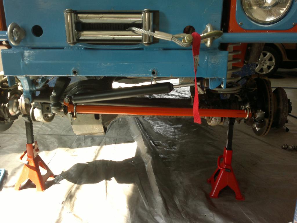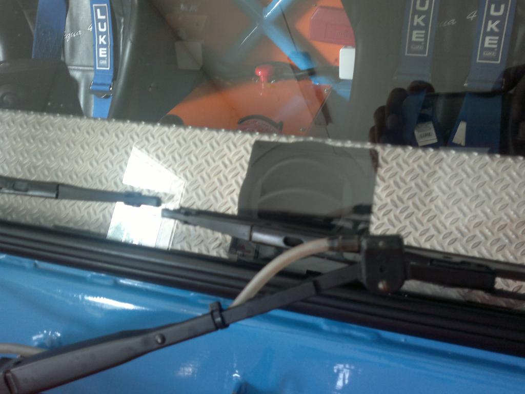 Sitten piti ruveta miettimään arkojen kohtien suojausta. Perät ja vaihteistot autossa olikin jo panssaroitu. Ensimmäiseksi tein/teetin eteen panssarin suojaamaan ohjausvartta ja ohjausiskunvaimenninta. Seuraavaksi putkitin tukevalla putkella takatukivarret. Viimeiseksi tein/teetin raidetangolle suojan. Tukevalta tuntuu, panssareiden alta voi huoletta tunkata. Auto on saanut myös katon, lokasuojat, ja konepellin.