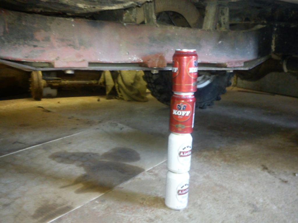 ![]() Pönttö-UAZ. Runko on korkealla, jakis roikkuu pari tölkkiä alempana.