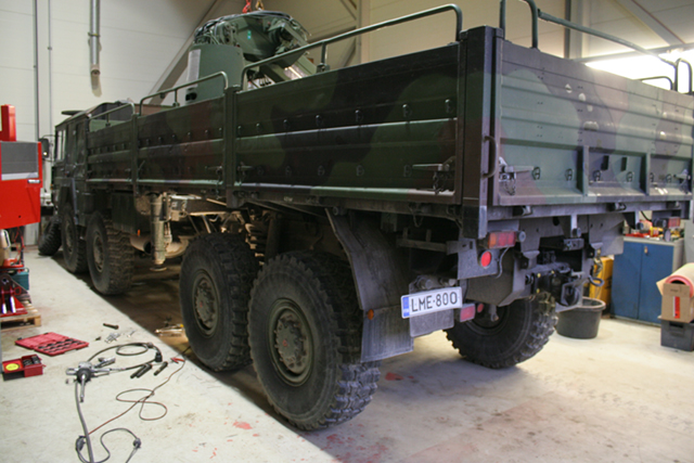 2900 leveänä noita on ainakin ohjuksien alustana. Olikohan 2700 leveitäkin olemassa..? Tuon auton tyyppi MANnin mallimerkinnöillä on vissiinkin 30.360 VFAEG. Kirjallisuudessa kulutukseksi ilmoitetaan 50 litraa sataselle. Sitä ei kyllä sanota, onko täydellä kuormalla. Varmaankin on, kun samaa ilmoitellaan sellaisillekin, missä ohjusjärjestelmä päällä. Vaikuttiko niin paljon vievän? |
