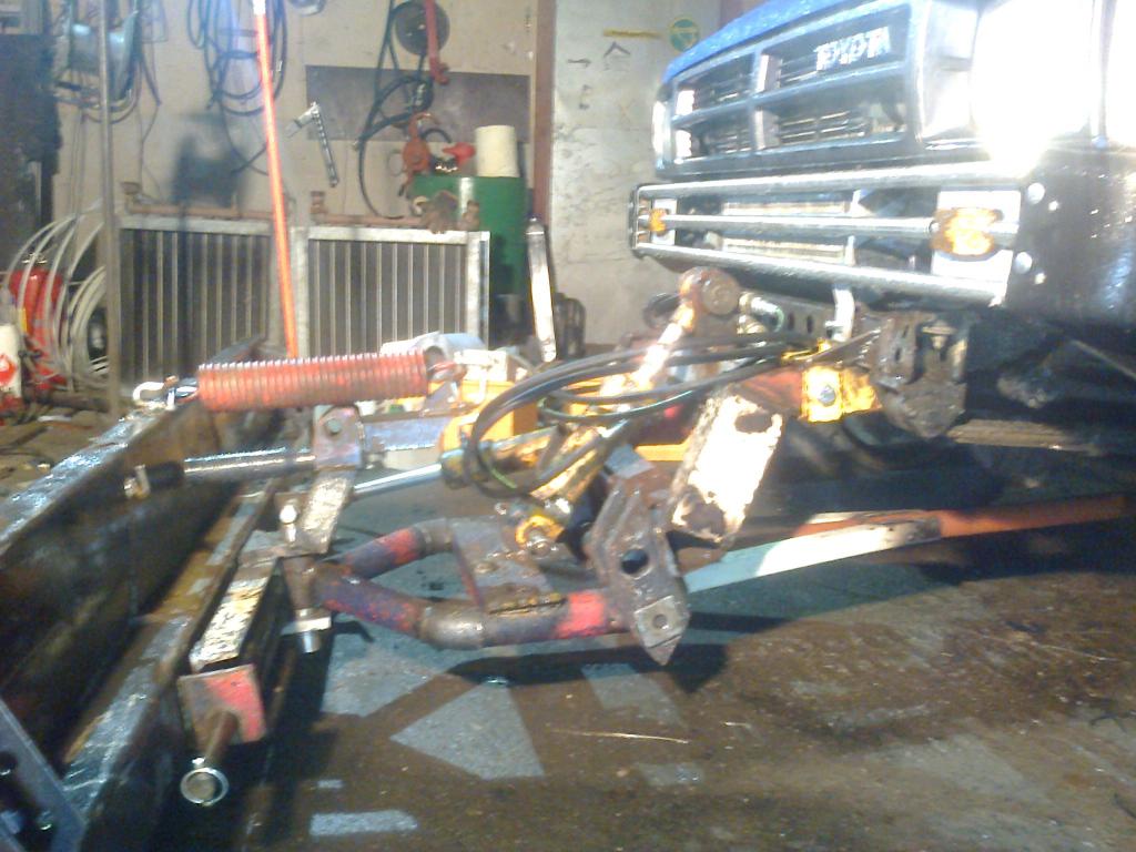 Tuon jälkeen on modattu hieman vinoksi, mutta perusrakenteet samat. Kiinnitys erittäin yksinkertainen, runkopalkkien päässä pultattavat korvakot, joiden väliin tulee putki. Kuvissa näkyy väliputki, johon tulee korvakoiden kautta menevä sisäputki. Nousee & laskee autossa olevalla vinssillä. Ei oo Suzukista, mutta erittäin helposti kopioitavissa mihin tahansa rungolliseen autoon. Omat kiinnikekorvakot on Fronteran karjapuskurin hinauslenkit, itse karjapuskuri on silvottu, ja lenkit vahvistettu, mutta sama perusrakenne. En viitsi laittaa samoja kuvia tähän, kun ne on tuolla aiemmin jo esillä. Voisin tietysti nykyisestä versiosta vielä kuvia ottaa, kunhan pari pientä parannusta saadaan siihen tehtyä... Tästä ketjusta on omaan tarpeeseen parhaat ideat yhdistelty, ja nurkista löytyneistä rojuista tehty. Itse aura on kaukolämpöputkesta leikattu palasia, jotka hitsattu yhteen (pätkä putkea halkastu ja hitsattu puolikkaat yhteen). Ei tarvi mitään vahvikkeita, sen verta jämyä tavaraa. |