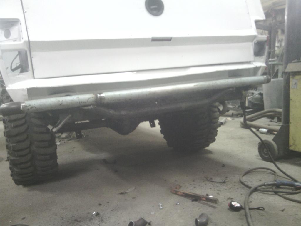 Etupuskuri tuli hitsailtua loppuun ja tehtyä muutama putki lisää vinssin narun liuku pitää viä tehdä. takapuskurin tarttis kans tehä niin sais ottaa korin pois ja maalata loput eli runko, akselit, puskurit ja panssarin.