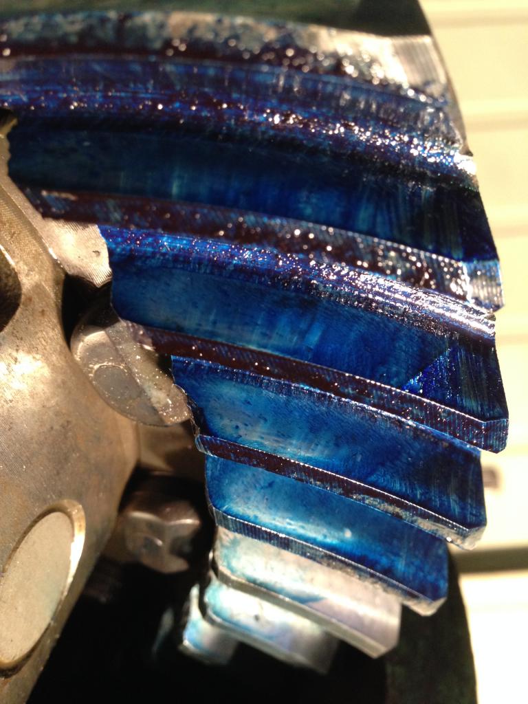 Nyt on tasauspyörästö pöydällä ja väriaineella todettu, että "banaani" ei osu kohdilleen välitysten vaihdon jälkeen. Kuvissa jälki jää pahasti hampaiden sisäreunalle.