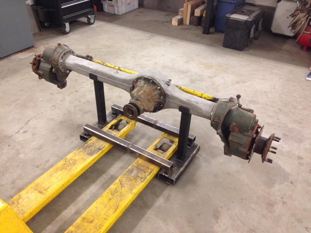 7.05 välityksellä ovat akselit. Akselit käytetty auki ja vaihdettu kaikki kuluneen osat uusiin. Tuli värkättyä tommonen teline helpottamaan asennusta