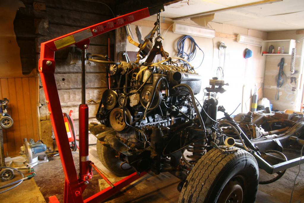 Siellähän oikea moottorikin - nyt kannattaa samalla jumpata sitten nuo jakiksen kumit uusiks, on aika oaljon kivammat vaihtaa tuossa asennossa ![]() Mikä härveli tuossa taka akselin päällä on, joku vinssikö ??