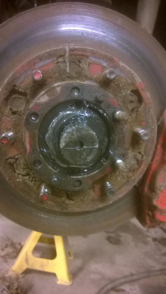 Tänään tuli putsattua ja irroteltua tuolta akselin päästä rikkonaiset osat, ruosteista pääteltynä halkeamaa on ollu jo aiemmin reilusti?
