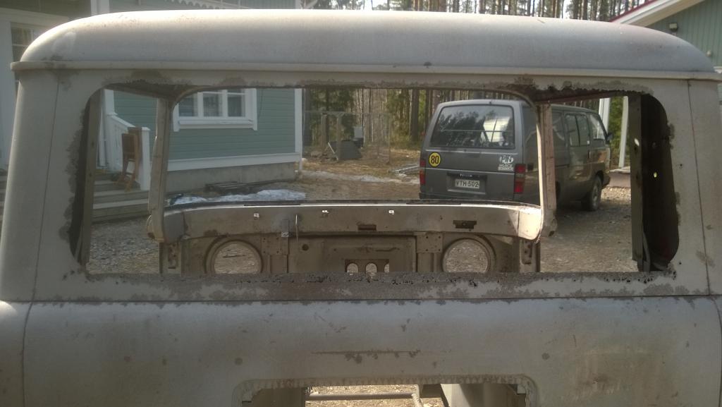 Takaseinä alkas olleen hefttattuna nippuun, enää puuttuu alakulmien ruostekorjaukset + pikku paikka kattoon.