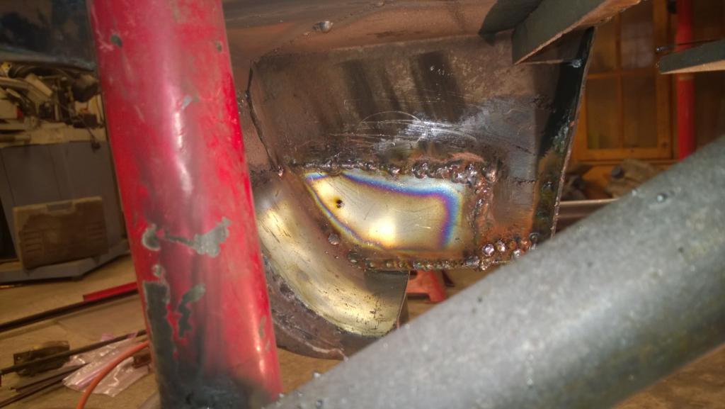 Alaosan reunuksen uusiminen tuli tehtyä kolmessa osassa, prosessi tuossa meni jotakuinkin niin että ensin leikkasin vanhan reunuksen pätkän pois, tekasin uuden vanhaa sapluunana käyttäen ja uus hefteillä tilalle. Sitten kun koko reunus oli vaihdettu uuteen hoitelin ruosteet pois. Nyt sekin odottelis enää yhtenäistä saumaa... Ens viikko menee aikalailla riekkojahtiin valmistautumisessa ja ite reissussa joten homma etenee taas reilun viikon päästä