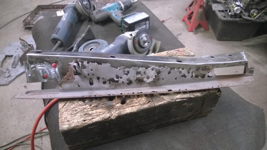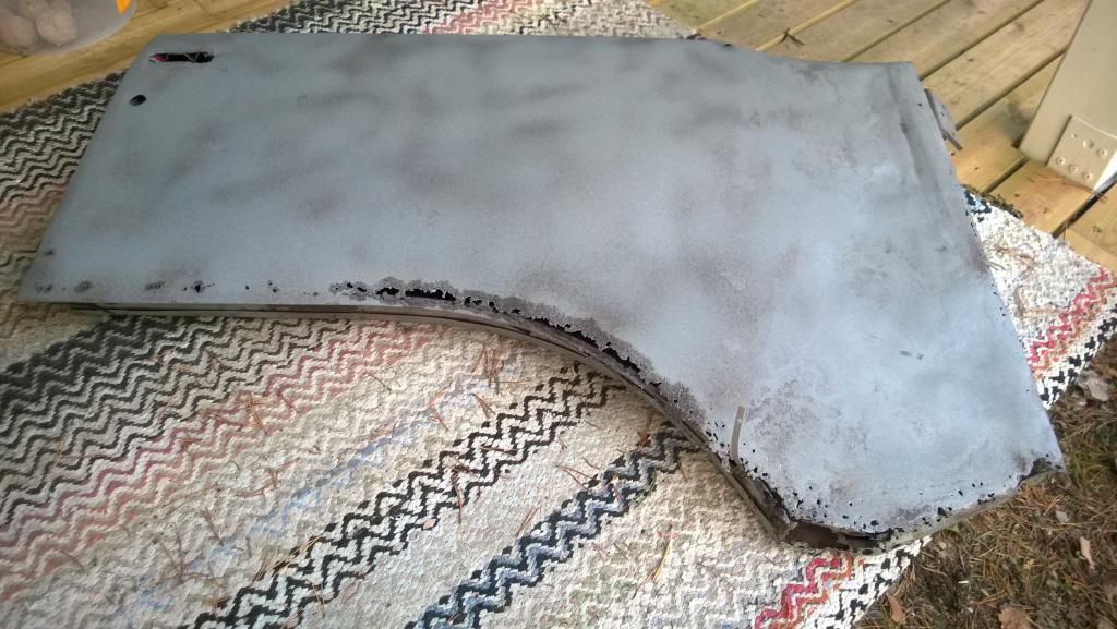 Pienellä hieronnalla tuosta saa kelpo lattiapaneelin ![]() Sitten piti ruveta toista ovea purkamaan, ensin saranat irti; ei auttanut edes kuuman anto pulteille että olisivat lähteneet nätisti, mutta rupespa tapahtumaan kun hitsasin M12 mutterit pultteihin. Sitten pistehitsit poralla pois jotta saa sisemmän pellin irti. Sittenpä kaikki jo leviskin käsiin eli rungon etuosa irtos ruosteen takia pintapellistä. Koska rungon etuosa näytti olevan kohtuu rumassa ruosteessa purin senkin vielä täysin osiksi ja alottelin korjaamisen neulomalla uutta peltiä rungon perusosaan. Tällä kertaa uutta tuli enemmän tilalle kuin vanhaa jäi ![]() Huomenna jos jatkais tekasemalla ensin tämän osan uudesta tavarasta. |