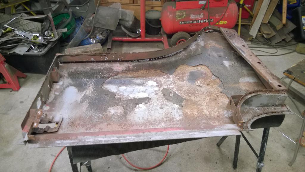 auttanut kun ruveta ne purkamaan. Yllättävän hyvin purkautui osiks, jouduin poraamaan ehkä viitisen pikku pulttia/ruuvia kun kannat petti, muuten kaikki lähti iskevällä akkukoneella nätisti irti. Hiekkapuhallus putsas pellit hyvin ja paljasti samalla tarpeen muutamalle ruostepaikalle Oven pellitkin on komeasti lommoilla ![]() Pitänee ottaa nuo työn alle kun ensin hoitaa tuon korin loppuun että saa sen alta pois puhallukseen ja pohjamaalaukseen. Helpoin varmaan jos poraa pistehitsit auki noista sisäpuolen pelleistä niin pääsee parsimaan nuo rungot kuntoon ennen kuin siirtyy pintapelteihin. |