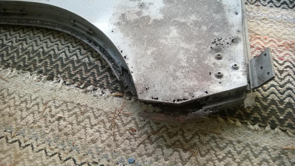 Alaosan reunuksen uusiminen tuli tehtyä kolmessa osassa, prosessi tuossa meni jotakuinkin niin että ensin leikkasin vanhan reunuksen pätkän pois, tekasin uuden vanhaa sapluunana käyttäen ja uus hefteillä tilalle. Sitten kun koko reunus oli vaihdettu uuteen hoitelin ruosteet pois. Nyt sekin odottelis enää yhtenäistä saumaa... Ens viikko menee aikalailla riekkojahtiin valmistautumisessa ja ite reissussa joten homma etenee taas reilun viikon päästä