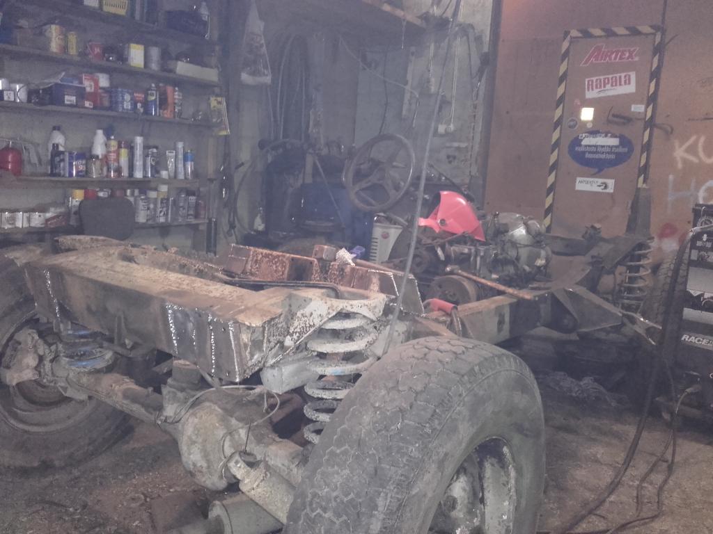 Komeus raastettuna takapihalta,akseliväliks mittailin karkeesti 2,5m
