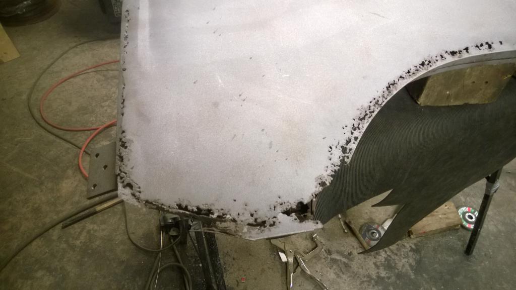 Vähän meinaa venyä nämä peltityöt... Kokeilin hitsattua vänkärin ovea paikoilleen ja eihän se kovin fiksusti