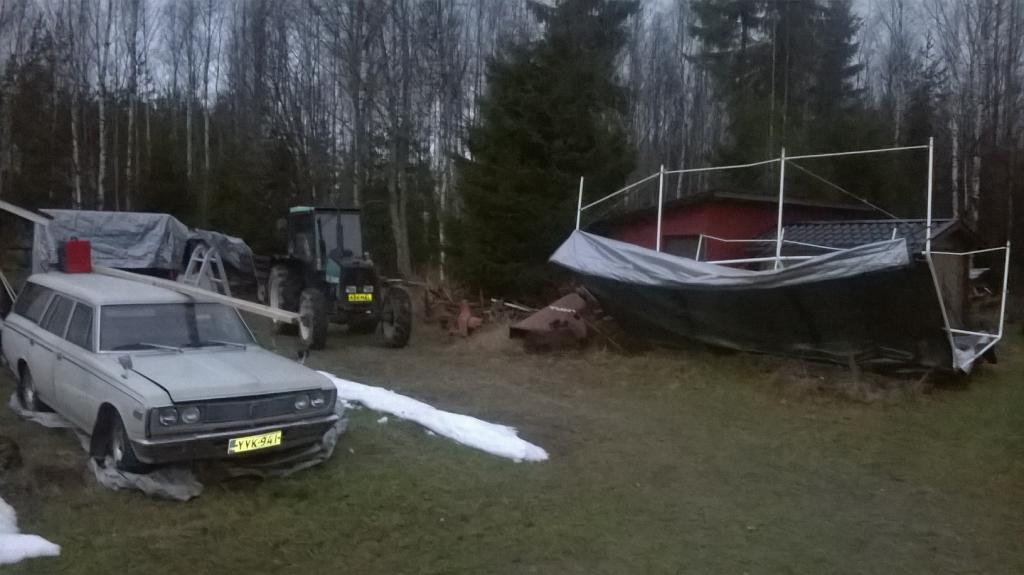 Ainainen ongelma kun pihalla ei ole kuin pohjolan talli, jotain säänsuojaa tarviis ja siihen hätään tämmönen makaa nyt lavalla pihalla: https://www.tavaratalohurrikaani.fi/...li-pro-65x34-m
