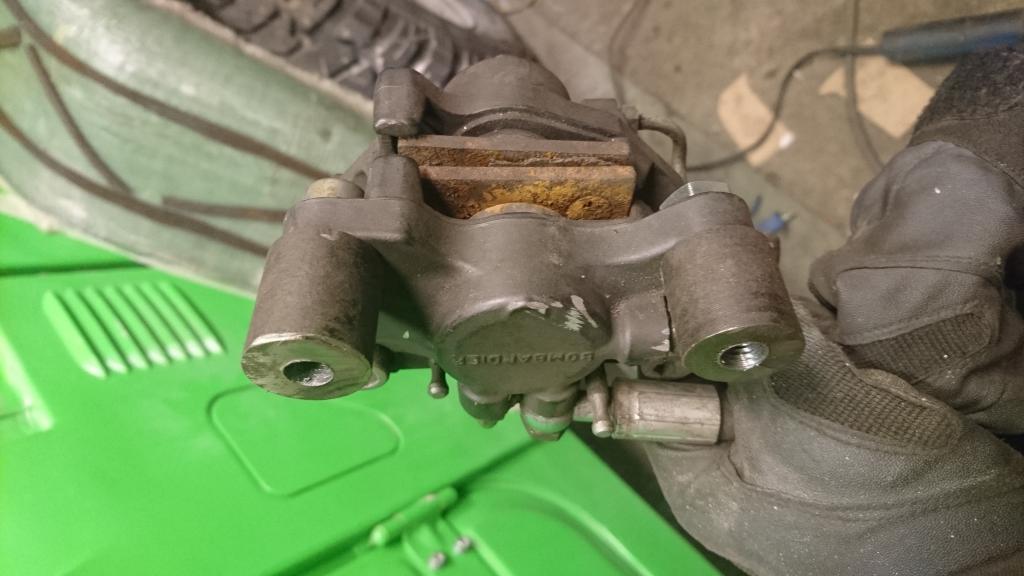 Käsijarrun satula löysi paikkansa. Harmi ku tuli syksyllä myytyä hydraulinen käsijarru nyt olis ollu tarve.