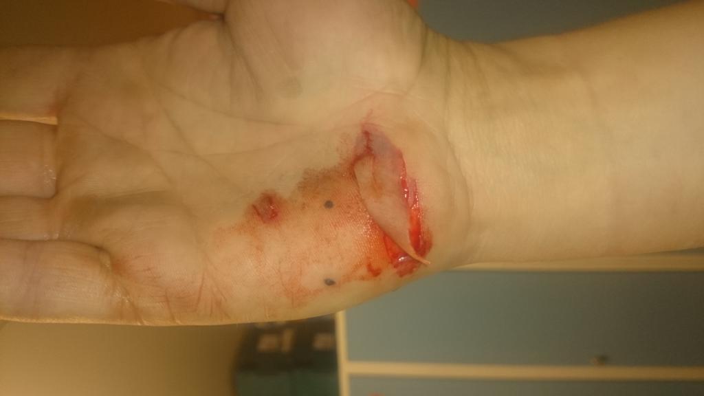 Mie vedin käteen tänään töissä. Oli lentävän laikka tiukemmassa, ku kämmennahka. Yritin irroittaa laikkaa lyömällä sen kehälle, mut ei auennut...