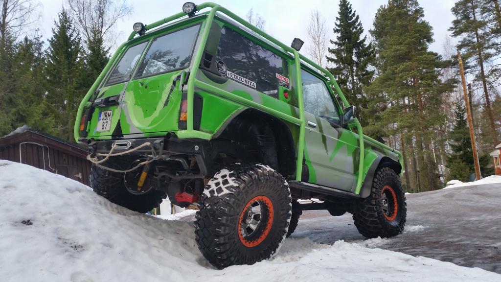 ). Lämmöt meinaa karkailla turhan nopeasti ja turhan korkealle. Plaan A syylari konttiin ja lisää flektejä sille. Etupäähän meinasin tehdä X linkin mutta koitetaan vielä asemoida iskarit vielä ennen sitä. X linkki akselilla kun ei tarvitse leimalle mennä ja sekin olisi ihan kiva hakea ( muuten karkaa homma ihan lapasesta ). Joutuis vaarmaan jouset ja iskaritkin pistää uusiksi ja sitten alkaisi mieli tehdä jotain coili tikkuja. ![]() Osui tuo kuva silmään ja iskarihan siellä tapissaan on. Tuskin siis voisi edes venyä tuosta enempää.. Tuli hommattua 10" leveet BL vanteet noiden 8" tilalle. Päällä vielä tuo 38.5 ( jotka on muuten myynnissä ). Tilalle jotain hiukan tuoreempaa. mieli tekisi siirtyä noista 37" kokosista isommiksi mutta taitaisi ruveta tulemaan remppaa vaan enempi? Istuuhan ne kivasti ja näyttää hyvältä. Heikosti vaan rengas tarjontaa.. Posti mies toimitti pikku paketin. Tuossa todistetta että metsässä se on käynyt. Tallissa olisi nyt tyhjä etuakseli putki mikä pitäisi sipistellä kuntoon. panssaroida se ja lukollinen murikka nakata kiinni. Takapään lukko ei toimi ajatuksen lailla niin tilalle joko arppi tai vastaava. sisustan kimppuunkin pääsee pikkuhiljaa kunnolla kun kaikki tavarat löytää paikkansa. Tankki vie paljon tilaa mutta katsotaan jos löytyisi joku passeli minkä voisi nakata auton alle. |