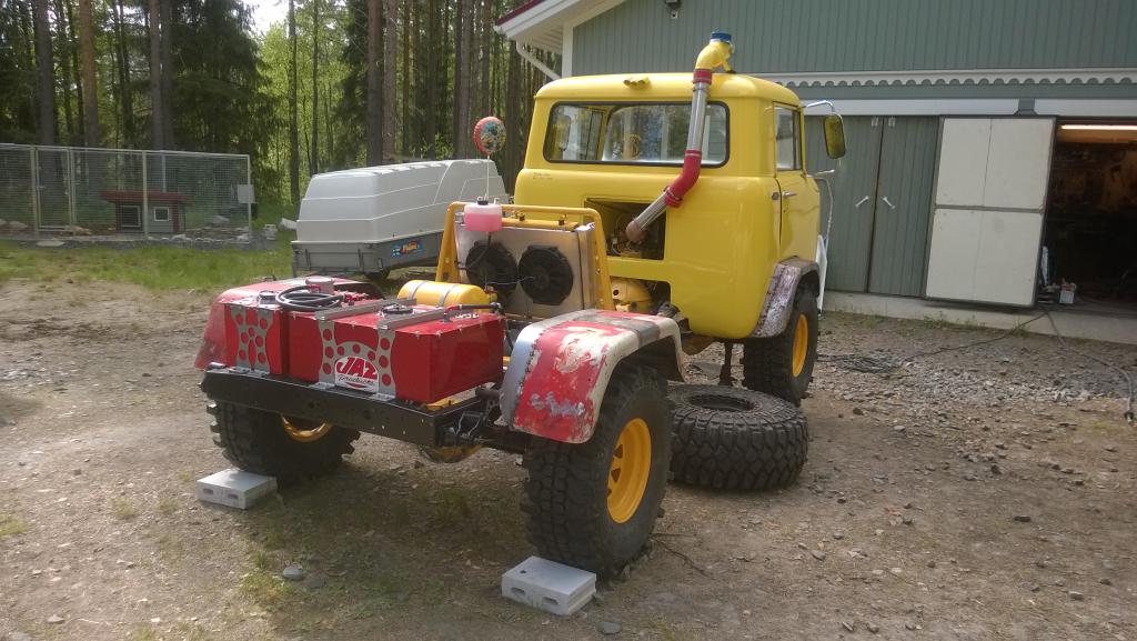 - simpukan letkut kytketty, vielä puuttuu säiliön ja pumpun välinen letku + pumppu pitää saada paikoilleen - ohjaustehostimen säiliö paikoillaan - kuskin lattian peitepelti tekastu, pitää vielä hitsata loppuun ja ruiskata Raptorilla samoin kuin rattiakselin suojaputki - ilmasäiliön pääputket kytketty - molemmat takalokasuojat levennetty ja pidennetty alustavasti - takavaloille ja rekisterikilvelle tehty teline, pitää vielä kävästä ostamassa kilven valot ja pultata paikoilleen hitsauksen ja maalauksen jälkeen Etulokasuojat pitäs tekasta myös, orkkikset on vähän kärsineet, katotaan voiko noita käyttää hyväks... |